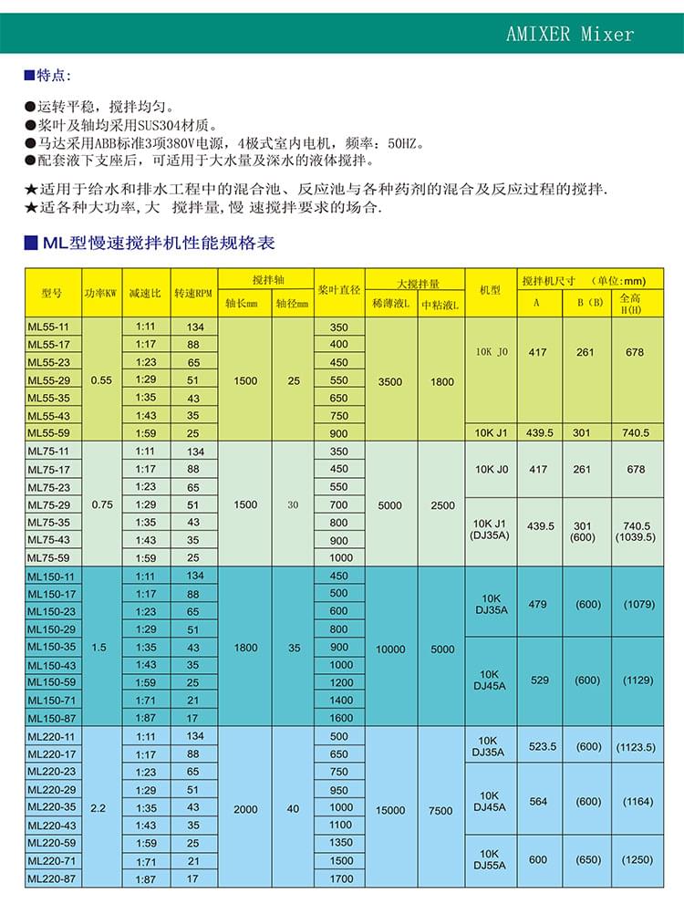 擺線式慢速攪拌機(jī)ML型特點(diǎn)