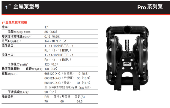 英格索蘭ARO金屬系列氣動(dòng)隔膜泵