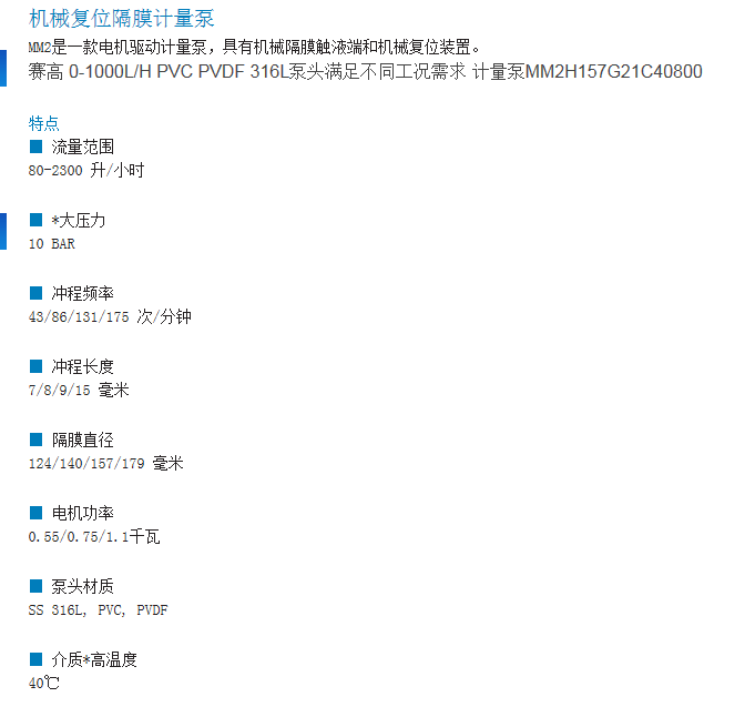 seko賽高MM1系列PVC/PVDF/不銹鋼泵頭大流量機械復位隔膜計量泵
