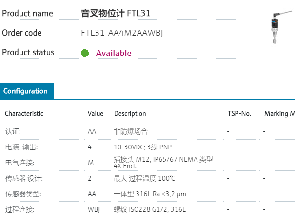 Liquiphant FTL31液體限位開關(guān)適用于所有行業(yè)測量,主要用于機(jī)械行業(yè)。Liquiphant可用于清洗、過濾系統(tǒng)以及冷卻和潤滑容器中的溢出保護(hù)和泵的空轉(zhuǎn)保護(hù)。IO-Link 功能可輕松實(shí)現(xiàn)參數(shù)設(shè)置。