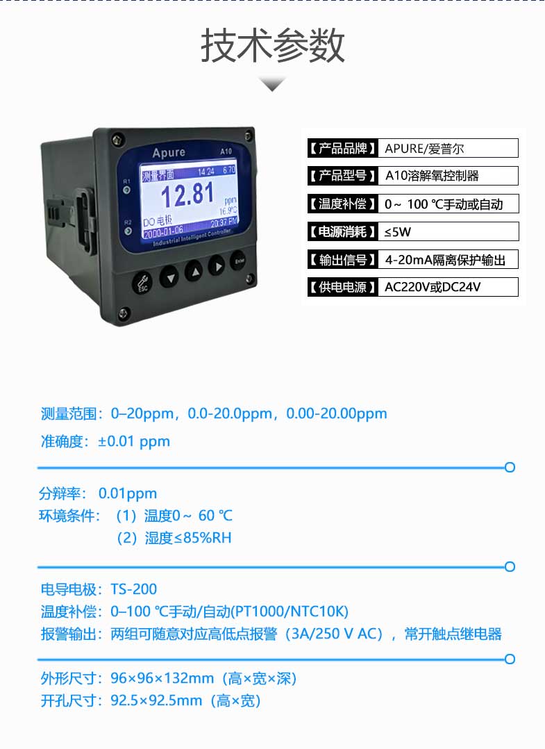 愛普爾Apure溶氧儀A10DO工業(yè)在線溶解氧控制器