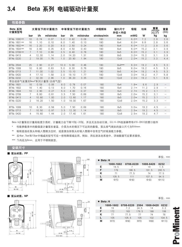 Beta型號壓力流量沖程流量沖程頻率連接尺寸吸程