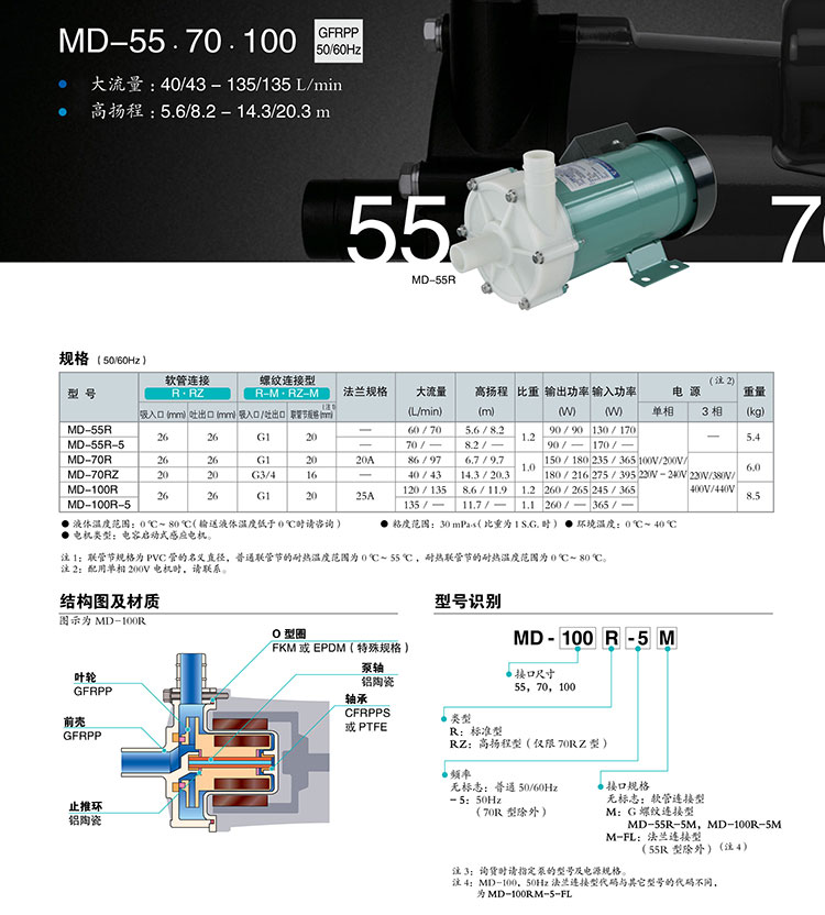 易威奇MD-55R-220N磁力泵  IWAKI 喉結(jié)式磁力驅(qū)動(dòng)泵 耐腐蝕電鍍泵