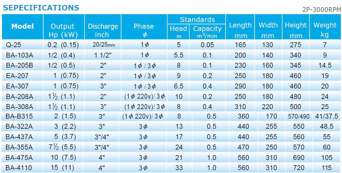 型號(hào):松河水泵SONHO泵浦BA-355A