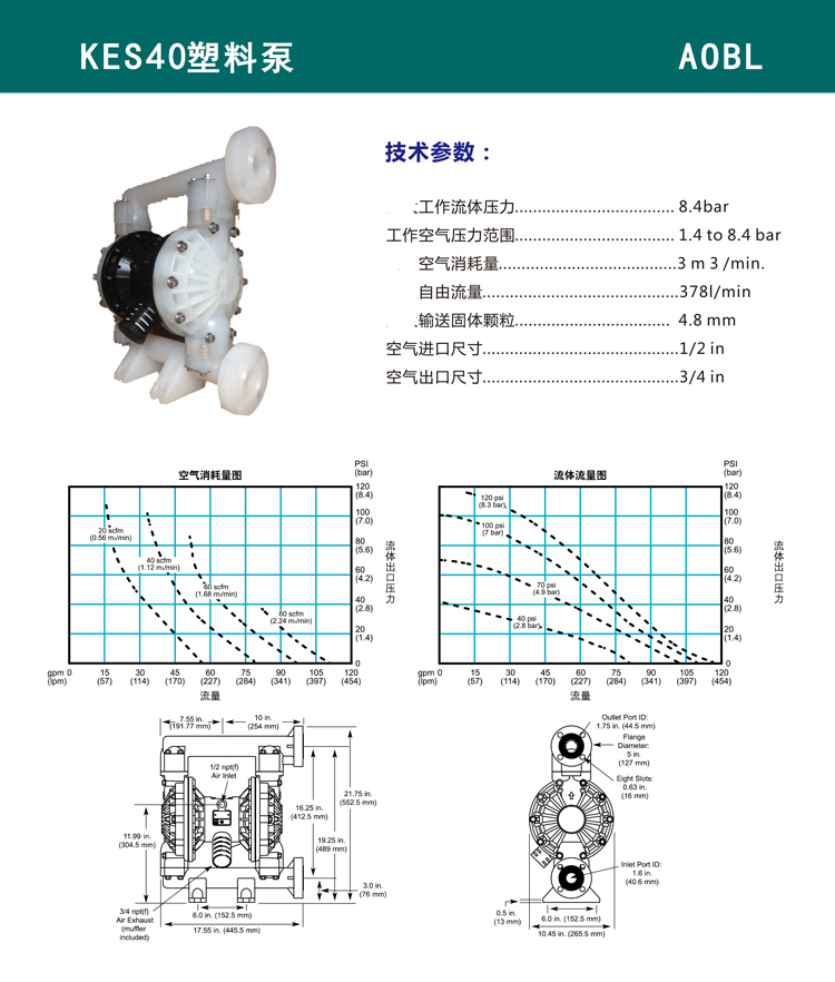 AOBL氣動隔膜泵KES40系列工程塑料泵耐磨材質(zhì)膜片可選氣動泵