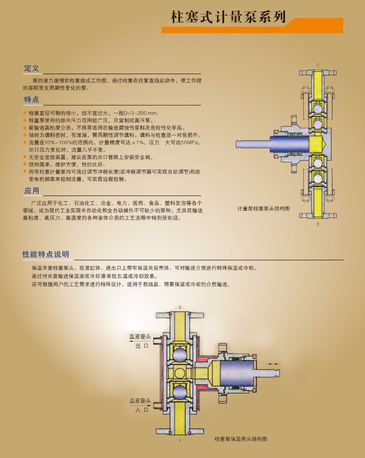 10、可根據(jù)工藝要求,泵頭可制成保溫、冷卻夾套型和電加熱型等多種特殊設(shè)計。