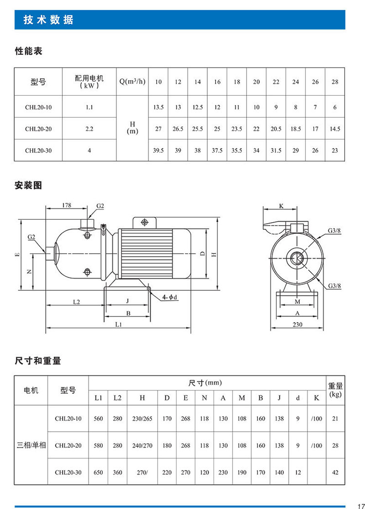 南方離心CHL20系列型號(hào)參數(shù)如下: