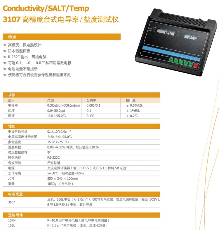 3107型高準(zhǔn)確度臺(tái)式電導(dǎo)率/鹽度計(jì)