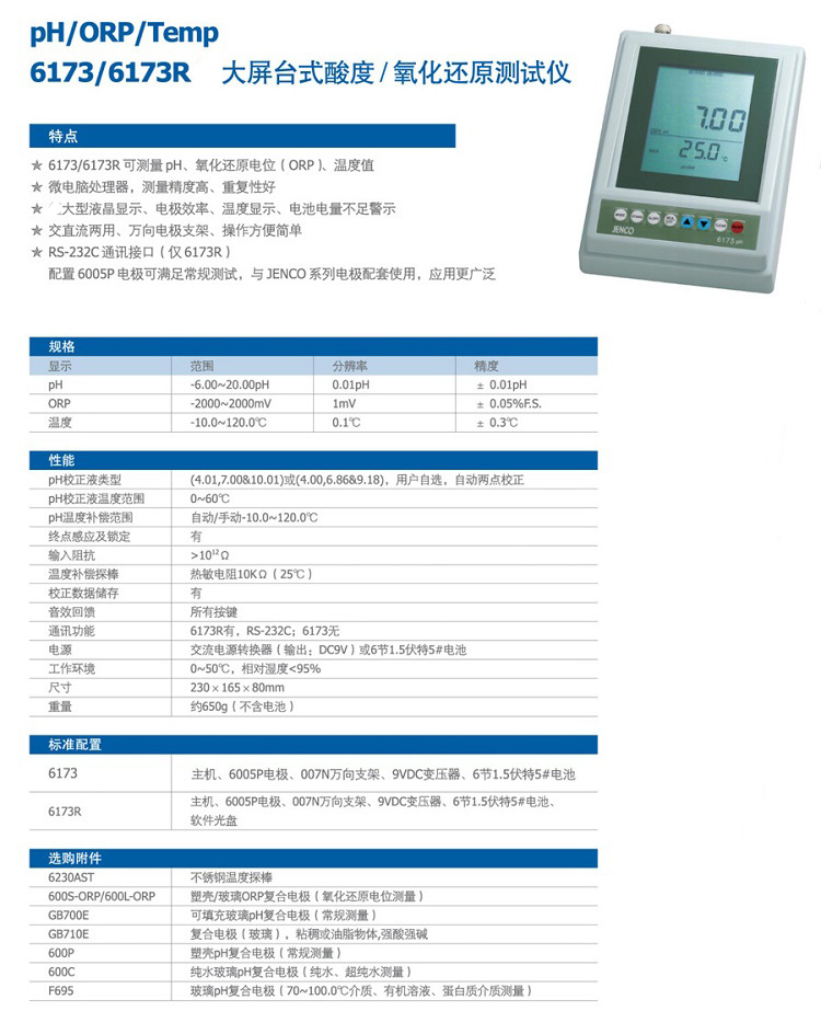 PH/ORP計(jì)6173 JENCO/任氏臺(tái)式電腦型便攜酸堿度計(jì)/mV/溫度計(jì)儀器
