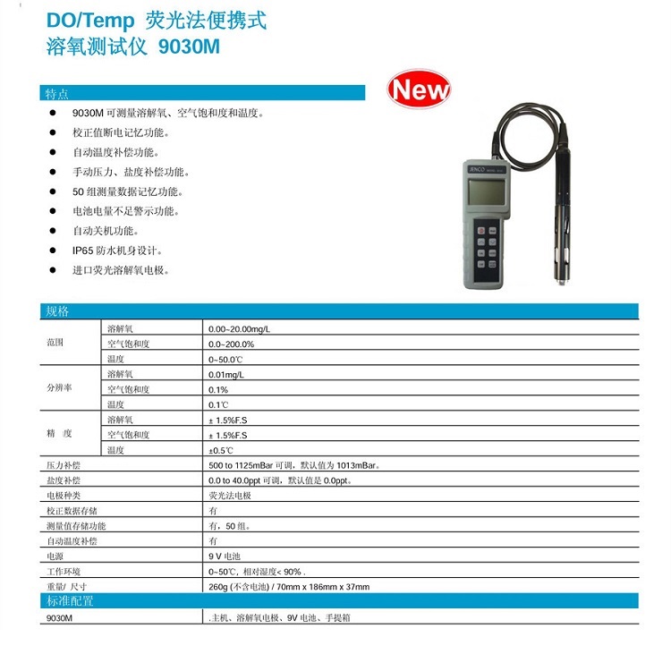 溶解氧測試儀9030M型 JENCO/任氏便攜數(shù)顯熒光法