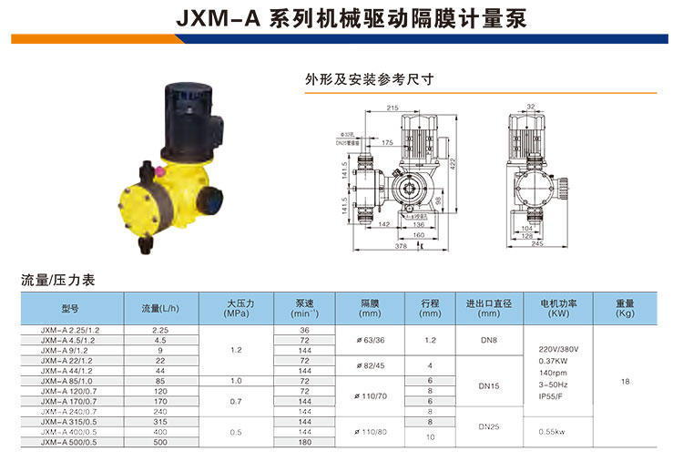 愛力浦計量泵JXM-A型高精度機(jī)械驅(qū)動隔膜泵定量加藥泵