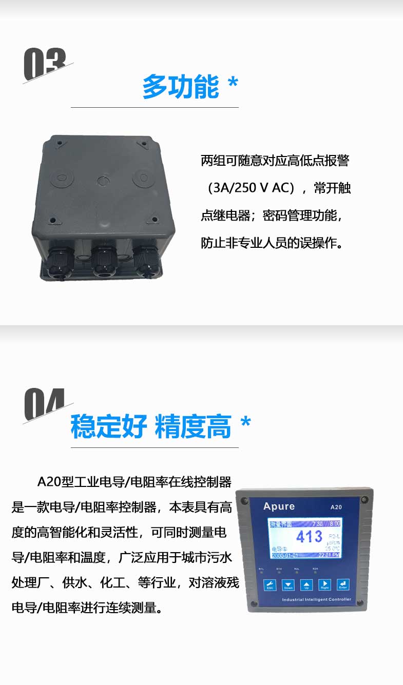 Apure愛普爾電導(dǎo)率儀A20CD系列工業(yè)在線電導(dǎo)/電阻率控制器