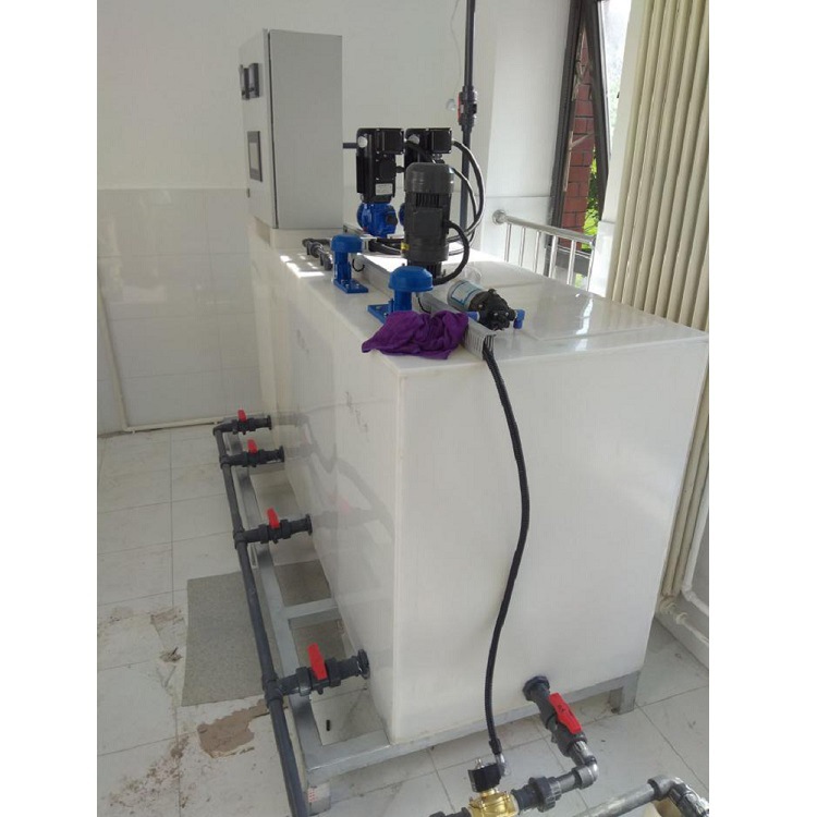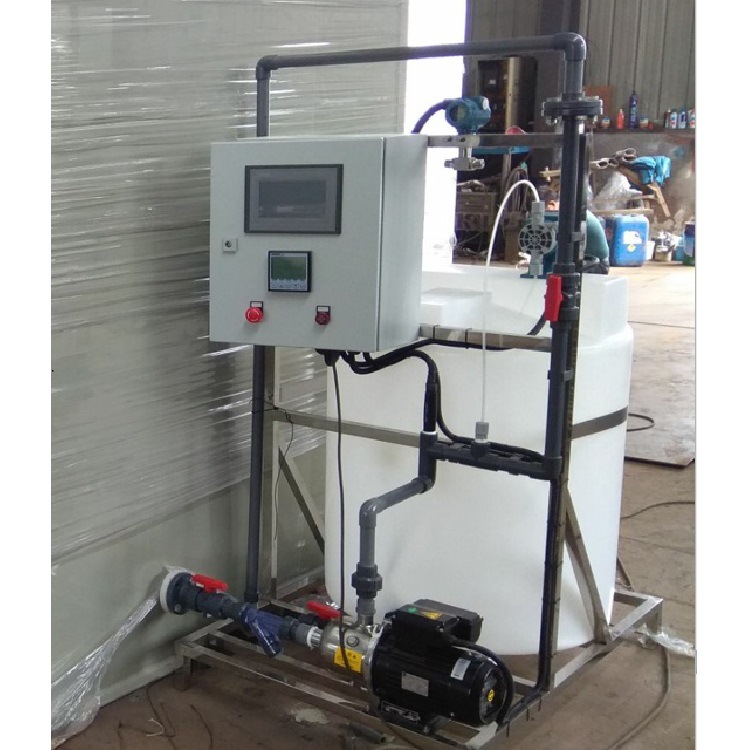 3、水處理加藥裝置。在水處理過程中向自來水、廢水、污水中加藥。主要用于有關(guān)給排水處理等工藝流程。如自來水廠、賓館、飯店、游泳池、污水處理廠等。