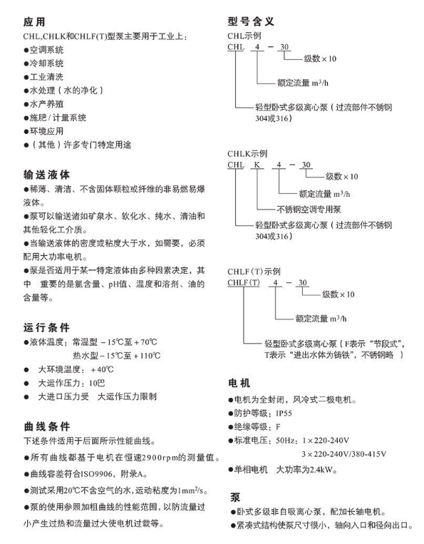 南方CHL,CHLK,CHLF(T)非自吸輕型臥式多級離心泵,葉輪導(dǎo)葉采用不銹鋼板沖壓焊接制成,配加長軸電機(jī),軸向入口和徑向出口。
