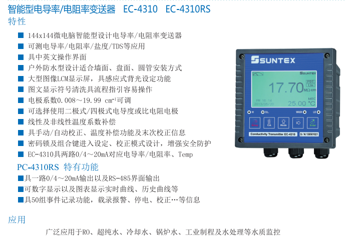 (SUNTEX)智能型電導(dǎo)率儀EC-4310  EC-4310 RS