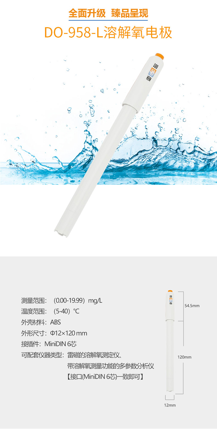 雷磁溶解氧電極DO-958-L 實(shí)驗(yàn)室電極傳感器探頭ABS外殼材質(zhì)