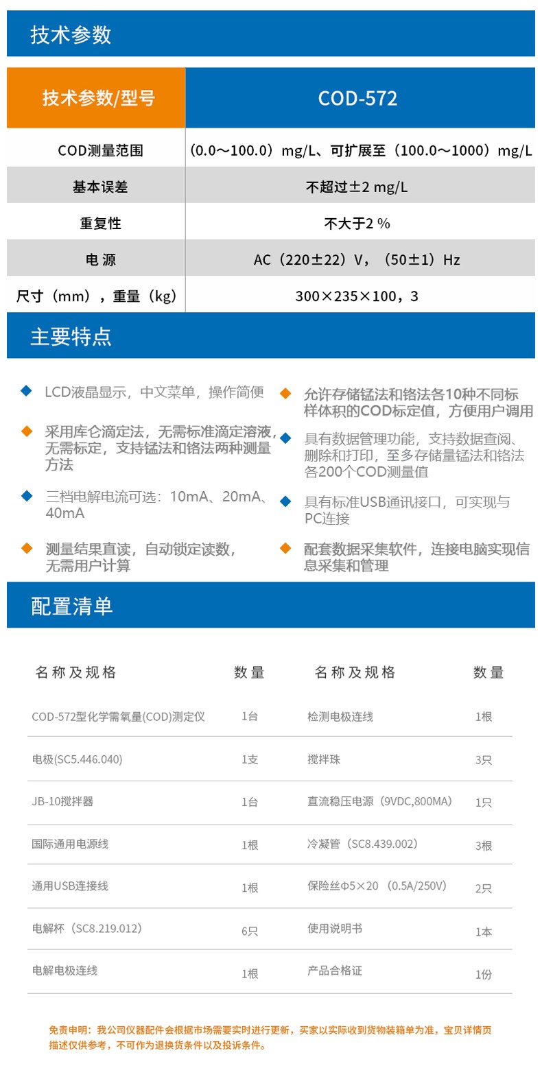 上海雷磁COD-572型化學需氧量測定儀庫侖滴定法COD測定儀檢測儀