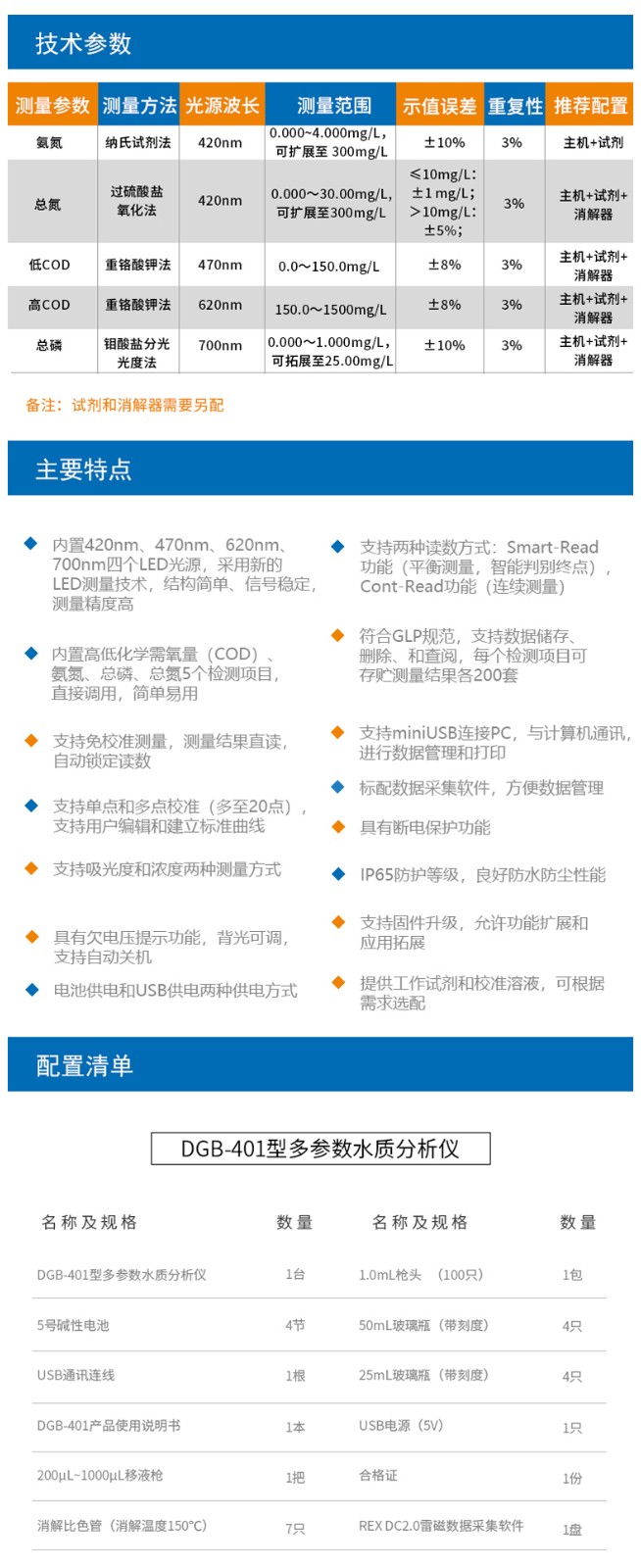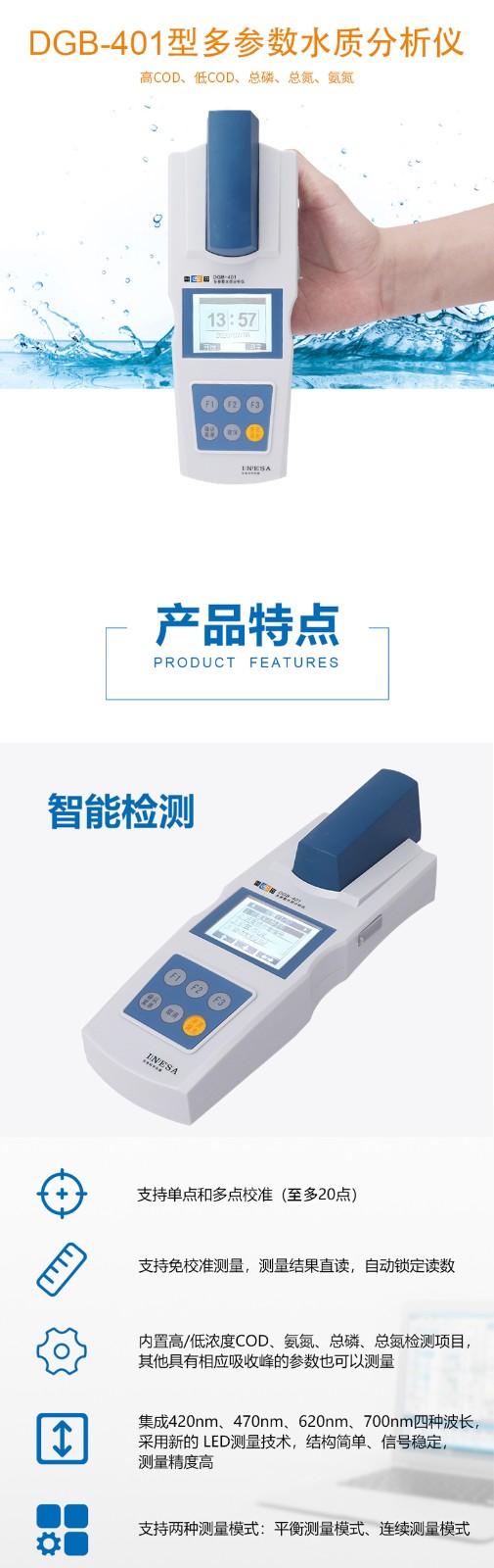 上海雷磁DGB-401多參數(shù)水質(zhì)分析儀COD總氮總磷氨氮測定儀測試儀