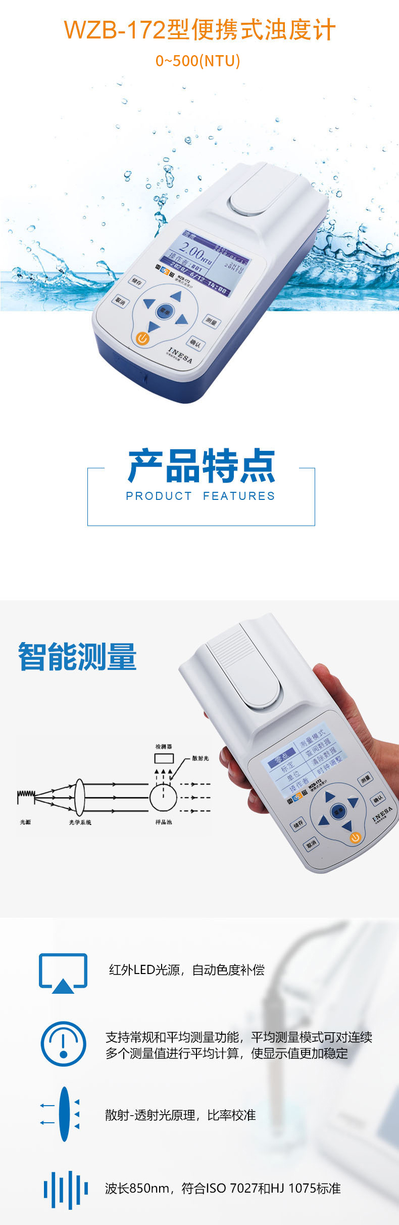 雷磁(leici) WZB-172型便攜式濁度計標(biāo)準(zhǔn)自動色度補償水質(zhì)分析儀濁度儀