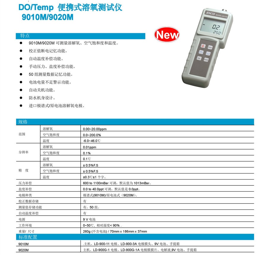 (JENCO/任氏)便攜數(shù)顯溶解氧測試儀9010M