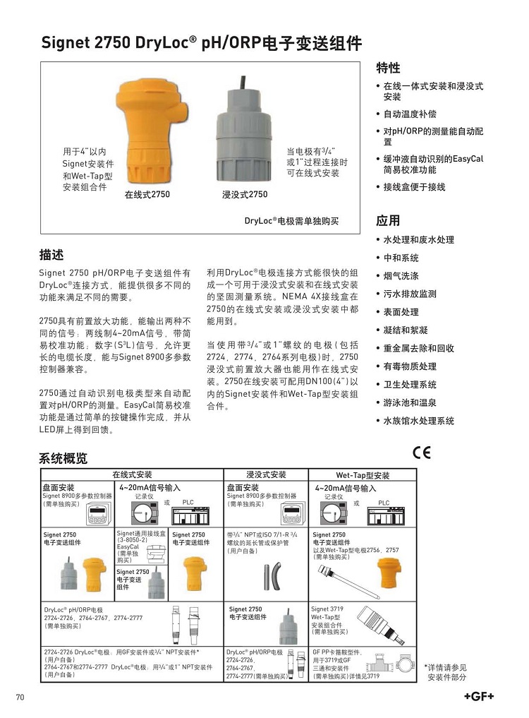 2750型配備了前置放大信號(hào),且具有兩種不同輸出:兩線4-20mA回路輸出或數(shù)字 (S3L) 輸出,后者電纜可較長(zhǎng)且與 8900 型多參數(shù)控制器兼容。
