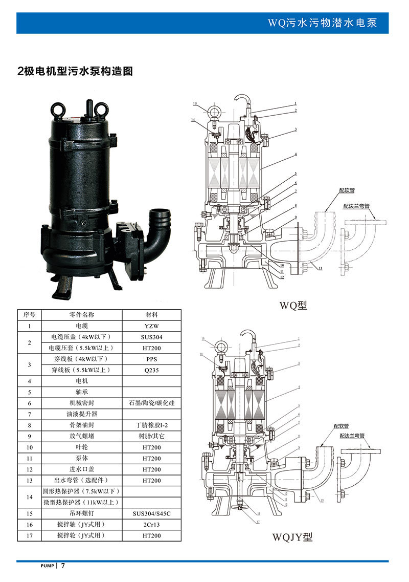 產(chǎn)品說明:南方WQ污水污物潛水電泵由電機(jī)與泵兩部分組成,兩者通過油室及機(jī)械密封組件隔開,分固定式自動耦合安裝和移動安裝。
