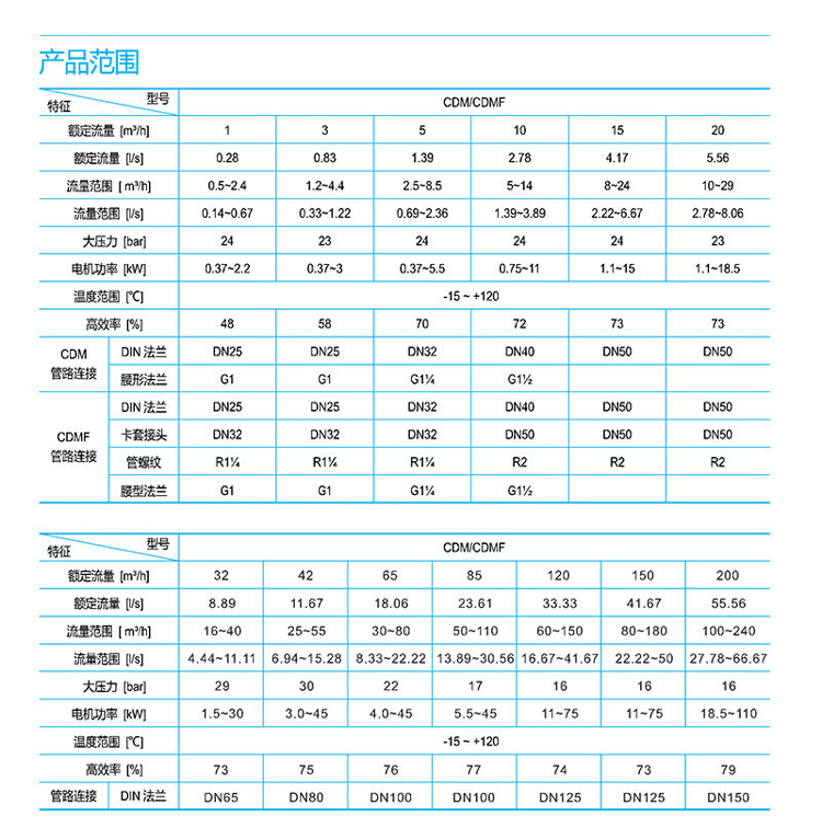南方CDM/CDMF系列為參照歐洲標(biāo)準(zhǔn)新自主研發(fā)的新一代、高效率非自吸立式多級離心泵。產(chǎn)品采用全新的工業(yè)設(shè)計,能效指標(biāo)達(dá)到MEI≥0.7,具有節(jié)能、低噪、環(huán)保及機構(gòu)緊湊、外觀美觀、重量輕、使用維護方便、可靠性高等特點。