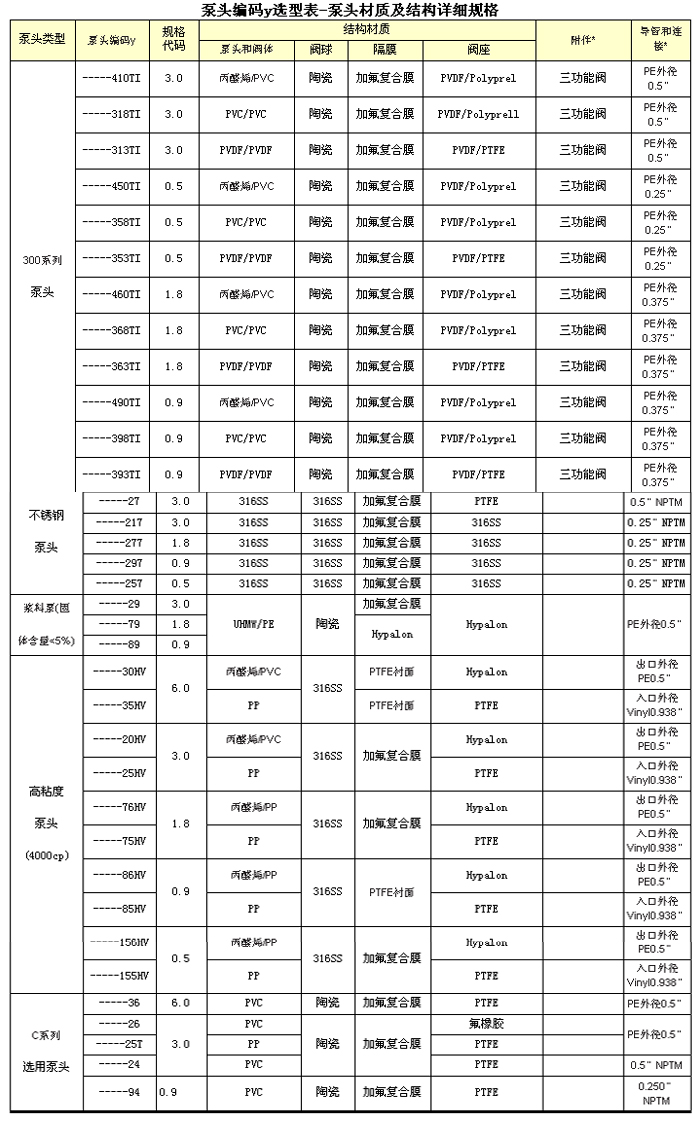 容量系列 詳見各系列泵選型表