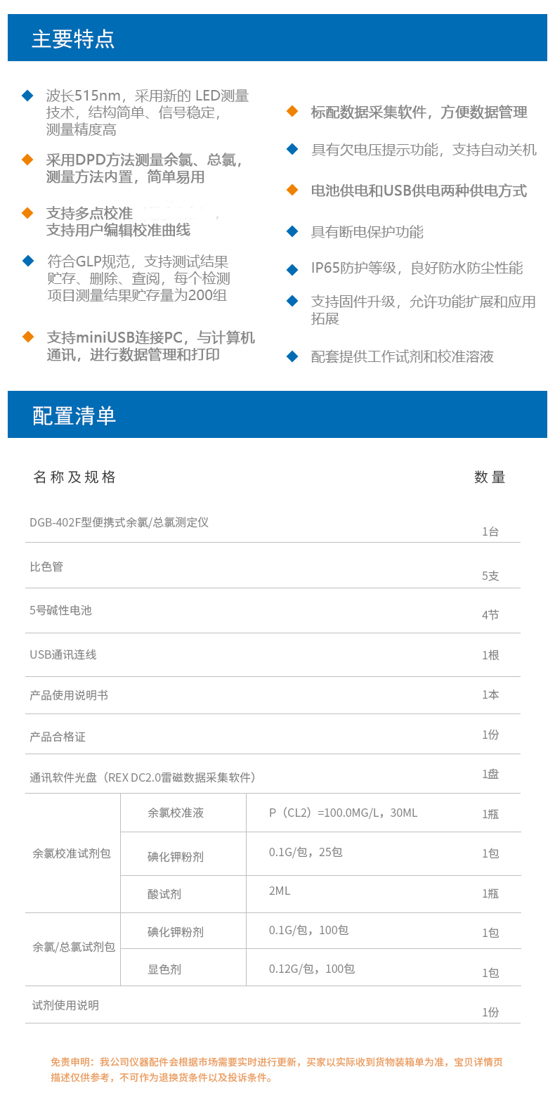 雷磁 便攜式 余氯 總氯 測定儀