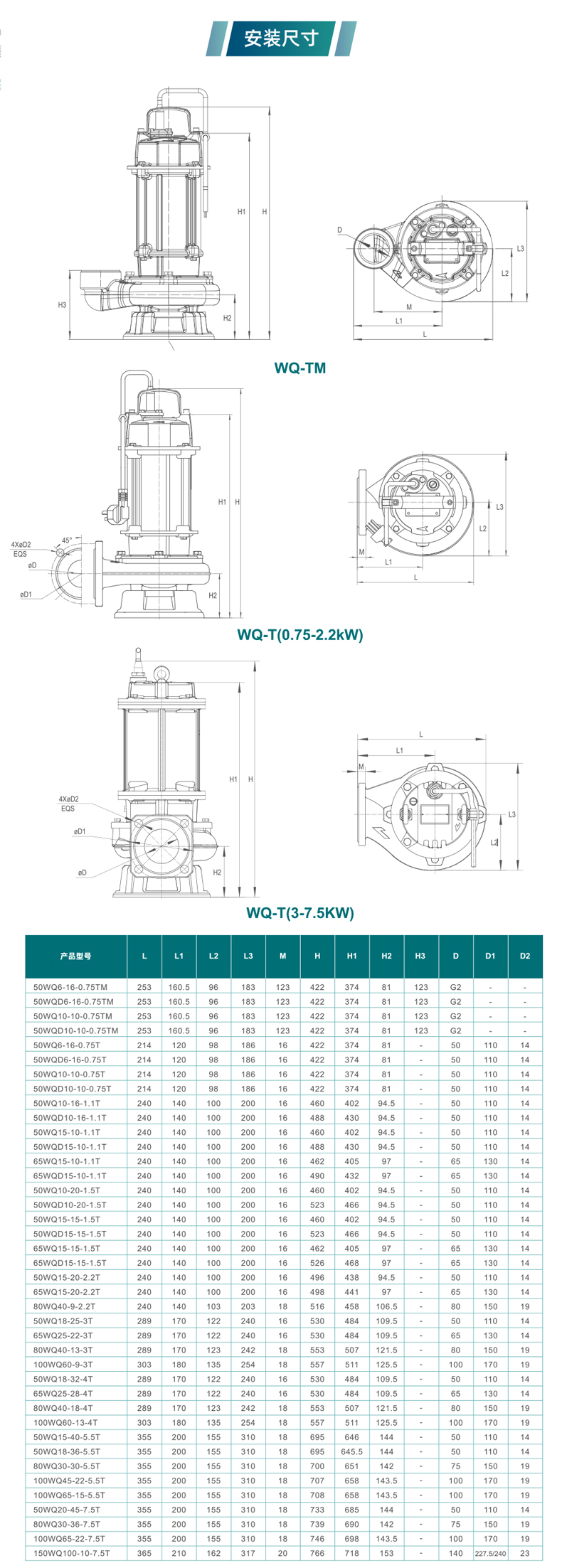 利歐水泵WQ-T中污系列潛污泵生活污水工業(yè)排污切割式潛水泵污水泵