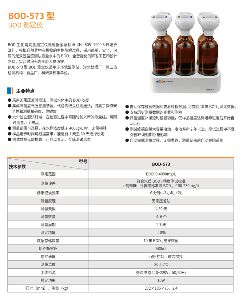 雷磁水質(zhì)分析儀BOD-573型BOD測(cè)定儀無(wú)汞壓差法水體BOD濃度測(cè)試儀