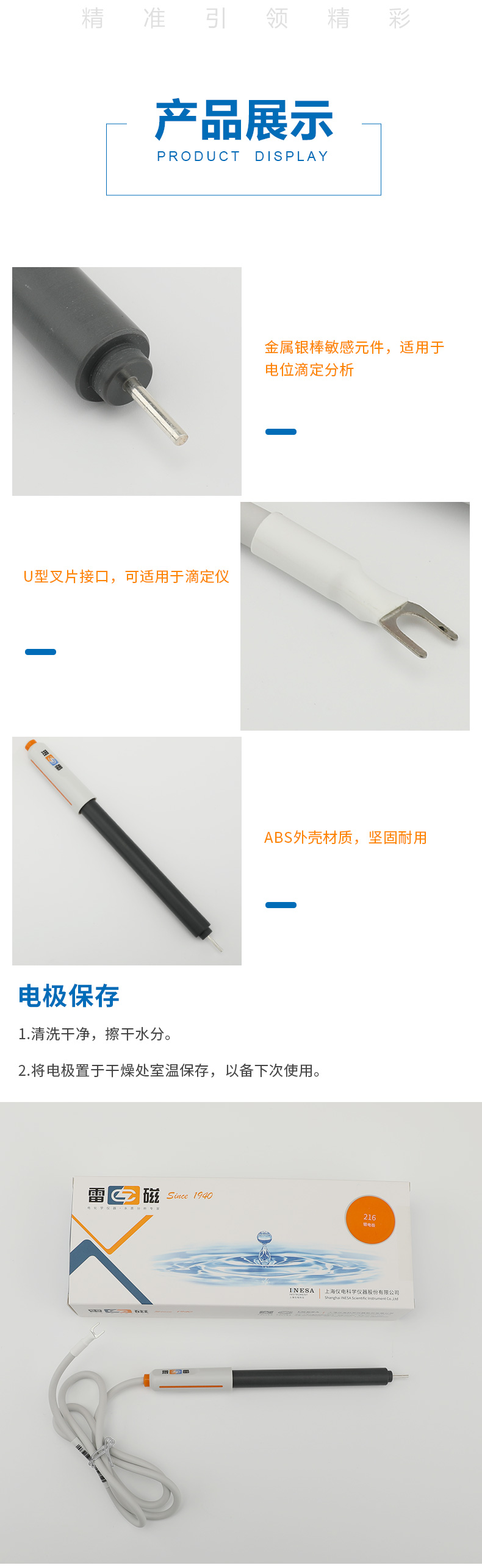 【雷磁 】金屬電極探頭傳感器 鉑銀銻鎢雙鉑 216銀