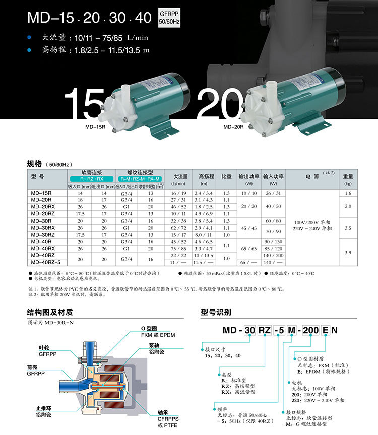 【IWAKI】易威奇磁力泵MD-70R過濾機(jī)循環(huán)水泵GFRPP材質(zhì)小型磁力驅(qū)動(dòng)泵