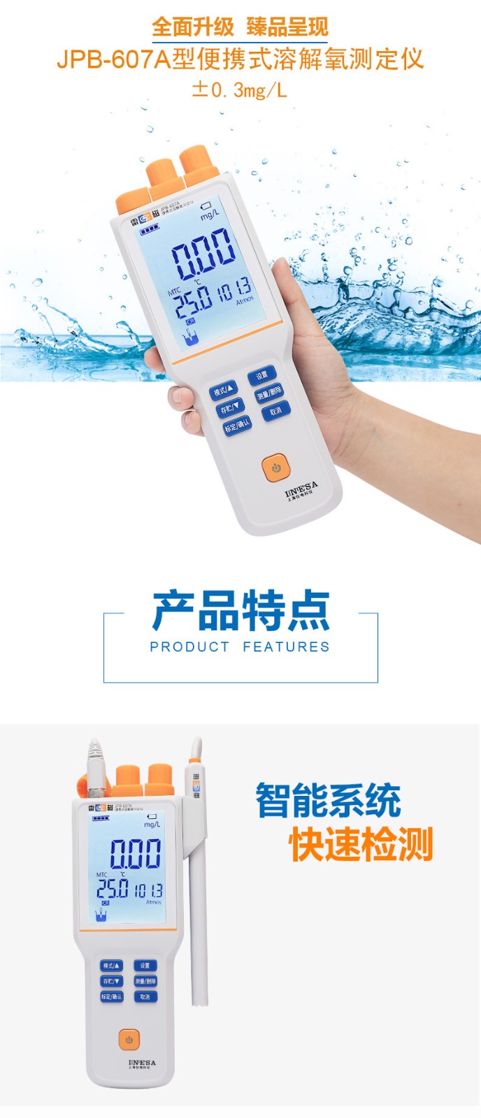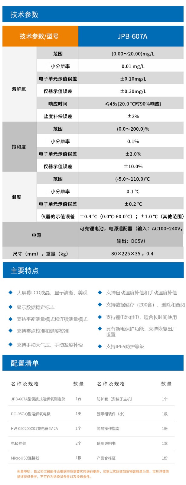 雷磁 JPB-607A 便攜式數(shù)顯溶氧測(cè)試儀 手持式溶解氧檢測(cè)儀表