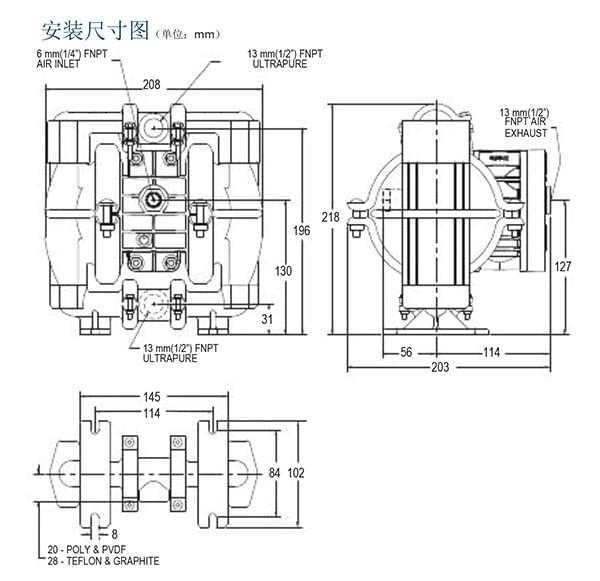 接液部和外壓板材質(zhì):聚丙烯 空氣腔:聚丙烯 中間體:聚丙烯 隔膜材質(zhì):Wil-FlexTM(橙點(diǎn))
