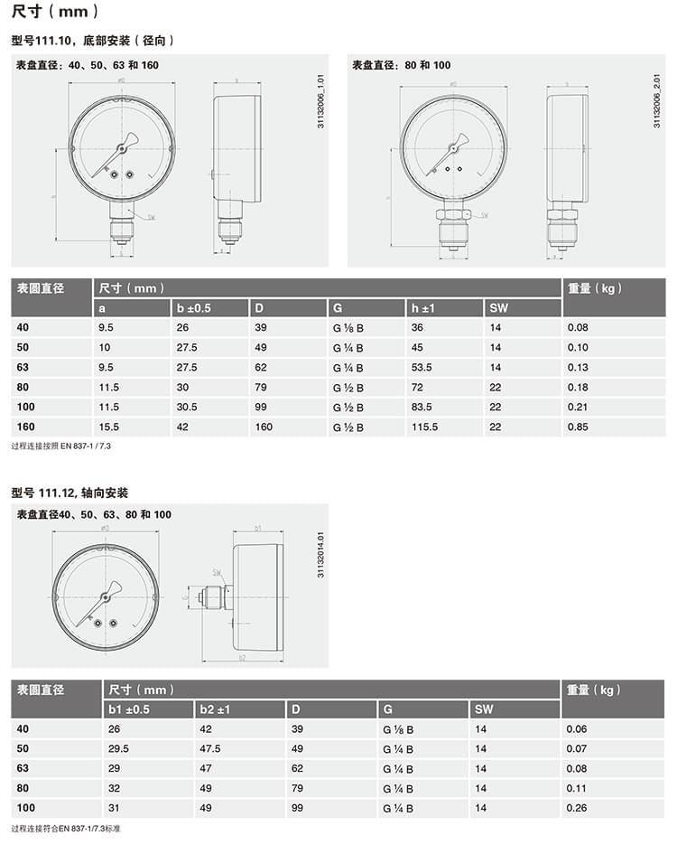 4.膜盒壓力表,塑料壓力表,不銹鋼壓力表:611.10,612.20,632.50 ,612.11 614.11 632.51 611.13