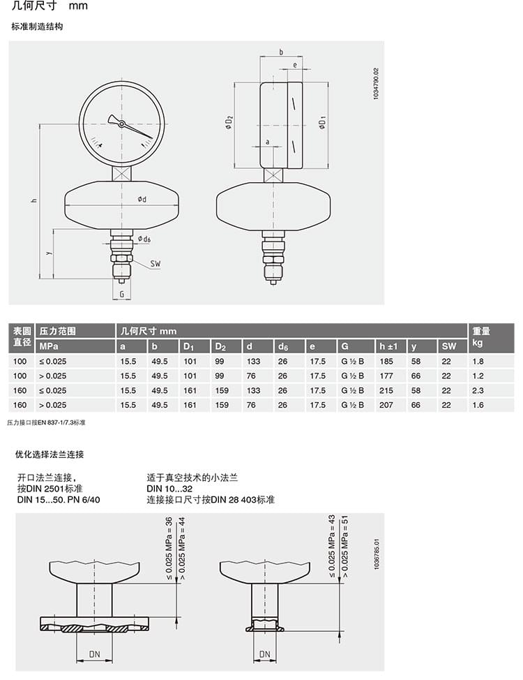 2. 膜片壓力表,化學(xué)工業(yè)型,表頭不充液/充液,高過壓保護(hù)壓力表,針對(duì)UHP應(yīng)用:422.12 432.50 432.56 423.36 423.25