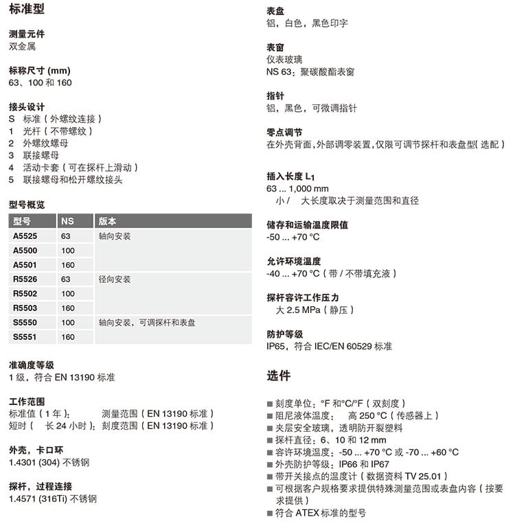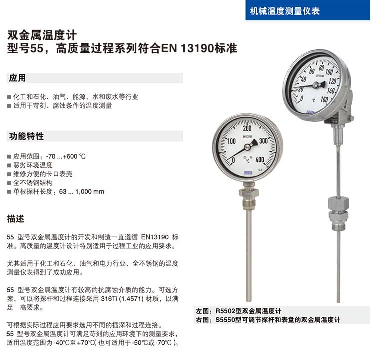 R55/A55/S55 雙金屬溫度計 耐腐蝕不銹鋼溫度計