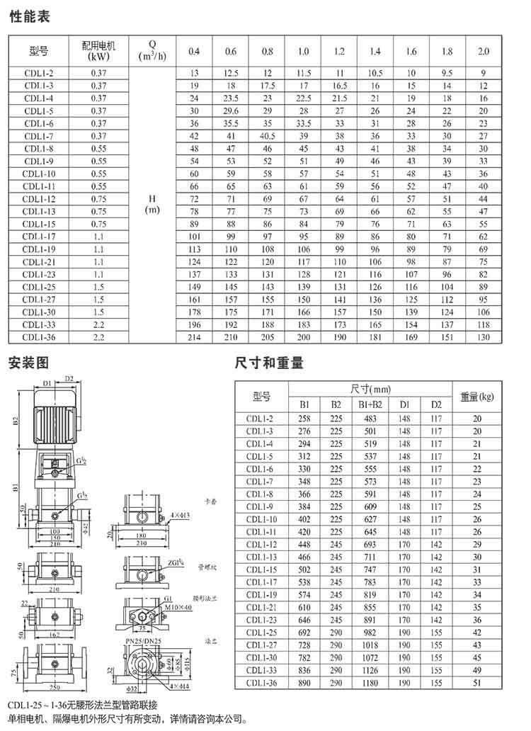 CDL/CDLF型輕型立式多級離心泵  污水泵