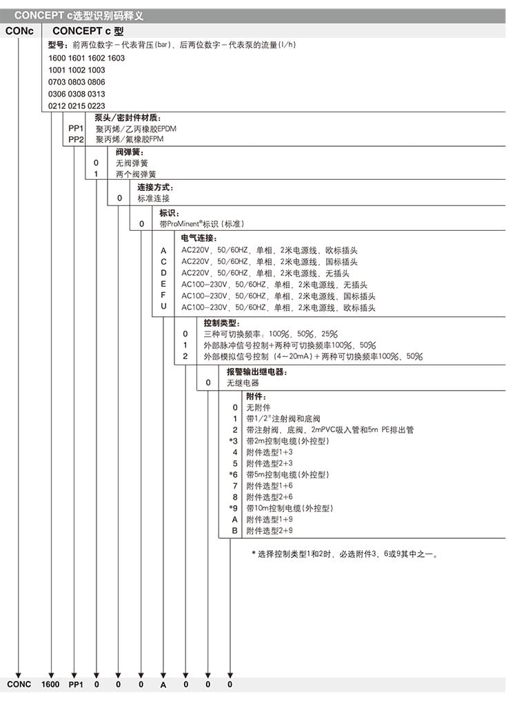 普羅名特計(jì)量泵CONCEPT C系列全系列完整型號: