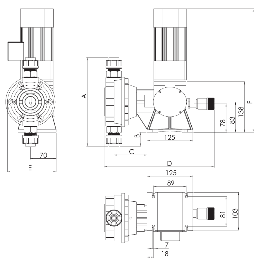 | L/h | Bar | SPM | mm | ml/stroke | mm | W | |