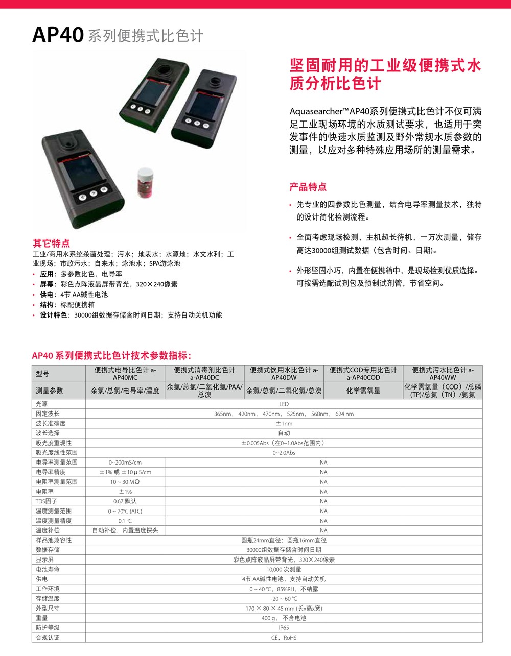 OHAUS奧豪斯AP30/AP40系列便攜式工業(yè)分析比色計(jì)多參數(shù)水質(zhì)分析儀