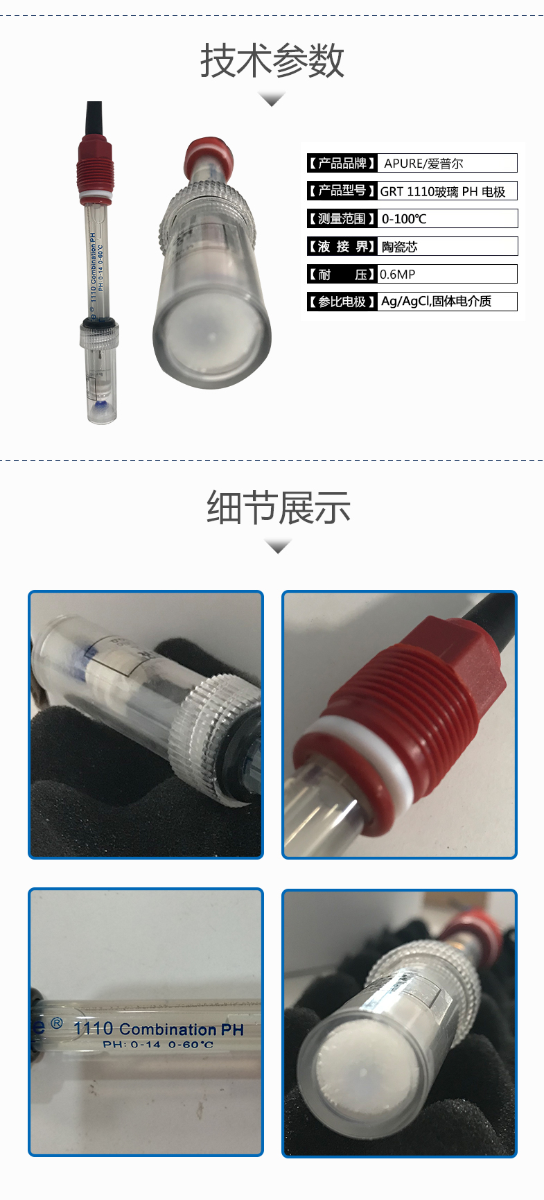 Apure愛(ài)普爾PH/ORP探頭GRT1110W在線玻璃PH計(jì)電極陶瓷芯ph探頭